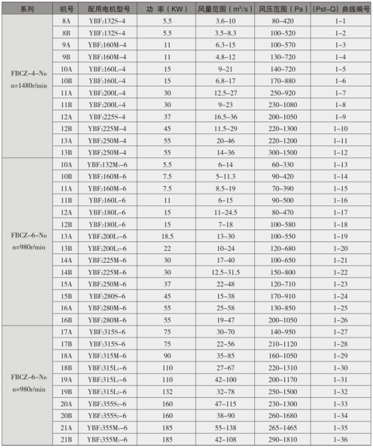 FBCZ系列煤礦地面用防爆抽出式軸流通風(fēng)機(jī)性能參數(shù)(一) |